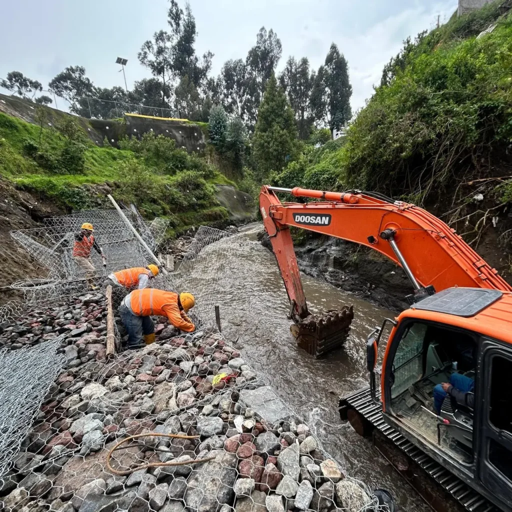 Quito, (Quito Informa). – La seguridad de quienes trabajan y compran en el Mercado Mayorista de Quito se refuerza con muro de contención en el margen izquierdo de la quebrada Shanshayacu, una obra para frenar la erosión y dar estabilidad a la zona.